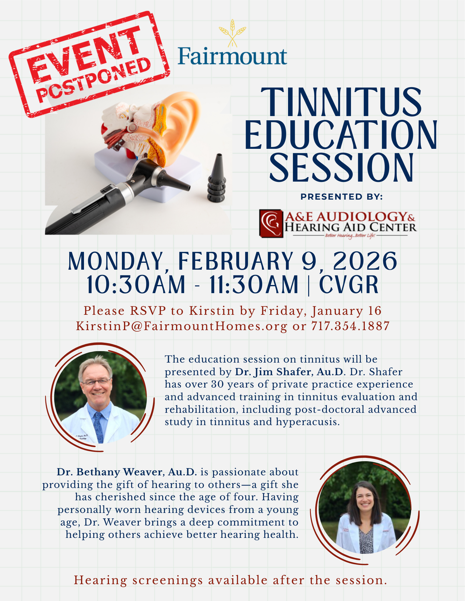 On Monday, February 9, 2026, we will be having an education session on tinnitus. Click here to register or get more information.